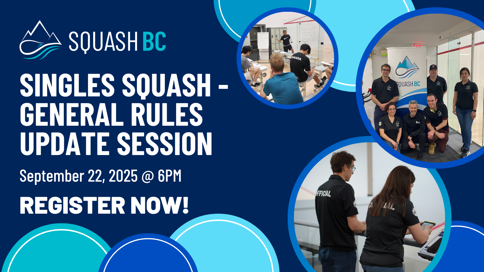 To help players, captains, and referees feel confident heading into the new season, Squash BC is hosting a free online Singles Squash – Pre-Season General Rules Update Session. Led by Simon Bicknell (Squash Canada National Referee), this webinar will provide a quick overview of the 2025 rule changes, plus time for questions and clarifications. Register now to secure your spot!